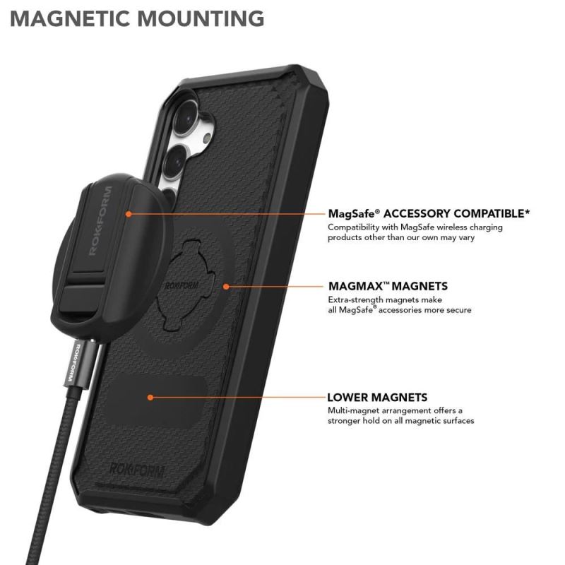 - Magnetické příslušenství: Bez problémů funguje s bezdrátovými nabíječkami a příslušenstvím Rokform.