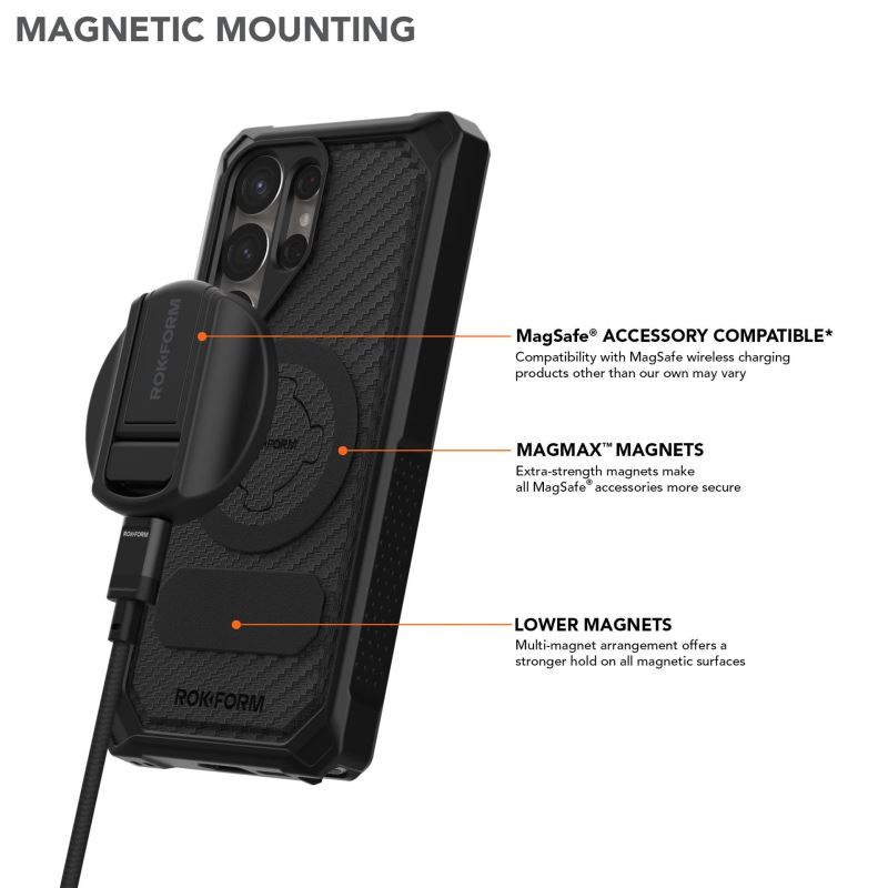 - Magneticky kompatibilní: Vaše nové pouzdro Rugged je plně kompatibilní se všemi magnetickými nabíječkami Rokform a příslušenstvím.