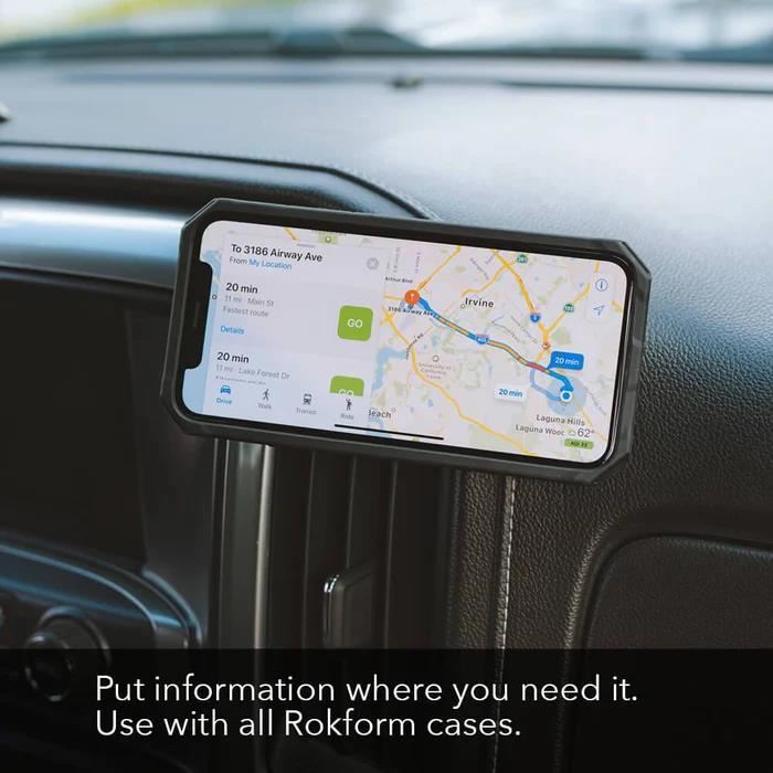 Použijte magnetický držák do auta Rokform Low Pro pro bezpečný přístup k GPS nebo hudbě, obrazovce nebo přijímání hovorů.