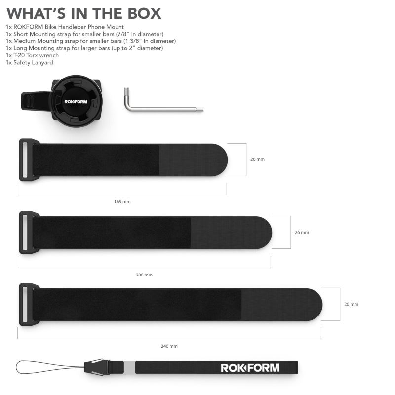 Malé ani velké průměry řídítek nebo rámu kola nejsou žádný problém. Součástí balení jsou 3 různě dlouhé řemínky, které si poradí s průměrem 22-57mm.