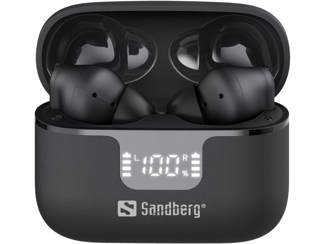 Sandberg bezdrátová sluchátka, ANC+ENC, Bluetooth s nabíjecím pouzdrem, černá