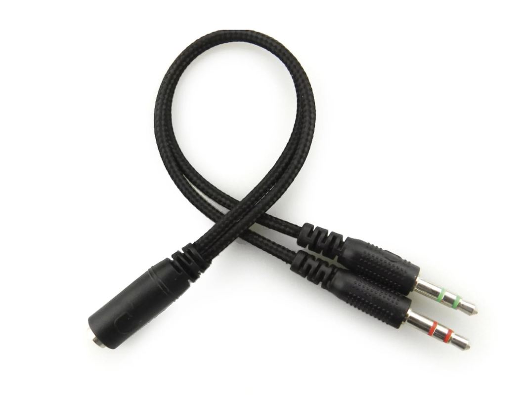Převodník pro PC: 3,5 mm samice 4-pólový MiniJack na 2 x 3,5 mm samec 3-pólový MiniJack