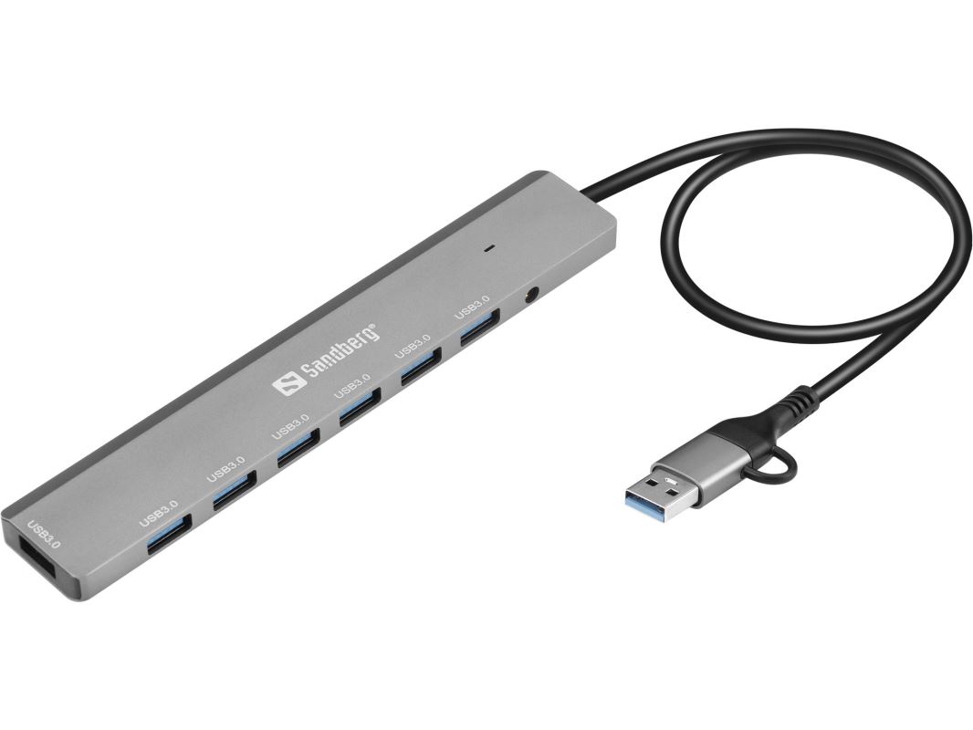 Sandberg USB-C/A na 7× USB 3.0 Hub je spolehlivým řešením pro každého, kdo potřebuje rozšířit počet portů bez ohledu na typ zařízení.