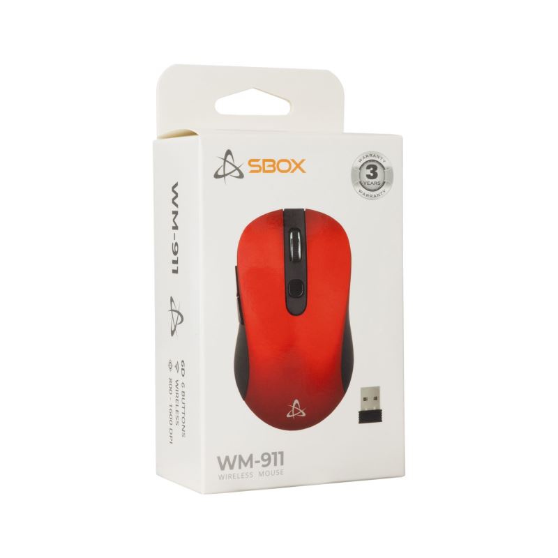 SBOX bezdrátová myš, 6D, 1600 DPI, červená (WM-911R)