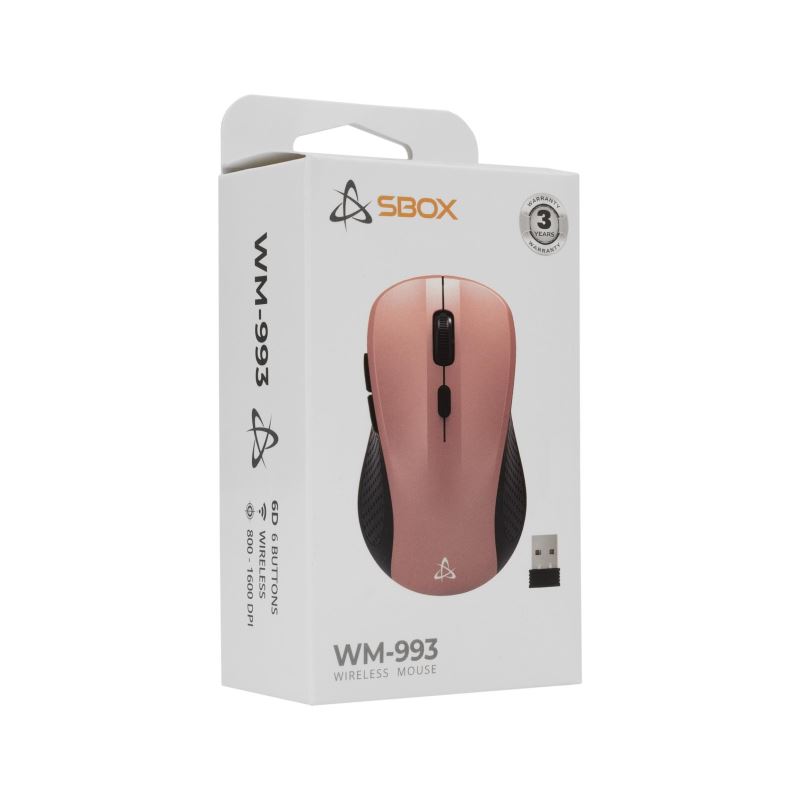 SBOX bezdrátová optická myš 800-1600 dpi, 6D, růžová (WM-993)