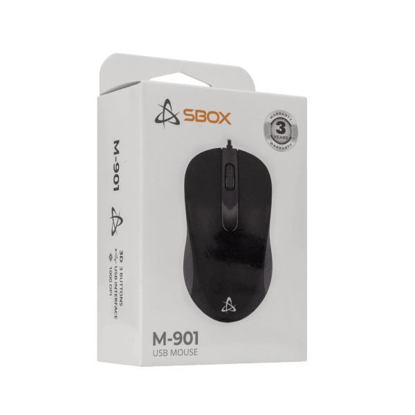 SBOX M-901 je spolehlivá drátová myš pro každodenní použití, která kombinuje výkon a pohodlí s přesným optickým snímačem.