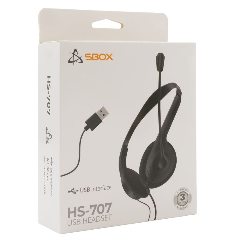 SBOX USB sluchátka s mikrofonem, ovládáním hlasitosti a ztlumením, černá (HS-707)