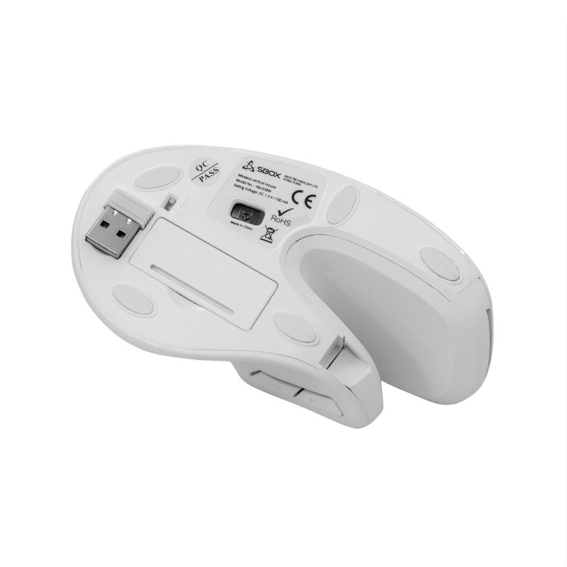 SBOX vertikální bezdrátová myš, 1200-3200 dpi, 6D, bílá (VM-838W-W)