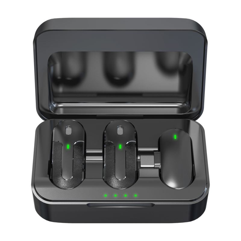 Nabíjecí pouzdro poskytuje energii pro až 4 plná nabití mikrofonů, což umožňuje dlouhodobé používání bez potřeby častého nabíjení.