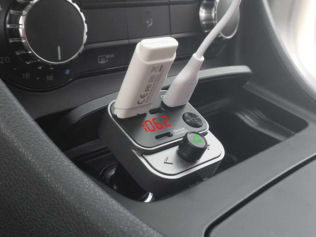 Rychlé nabíjení zařízení přes USB-A nebo USB-C porty s podporou QC3.0 (celkový výkon 30W) znamená, že můžete nabíjet vaše mobilní zařízení i během jízdy. Tento vysílač také zobrazuje aktuální napětí v autě, což vám pomůže sledovat stav baterie.