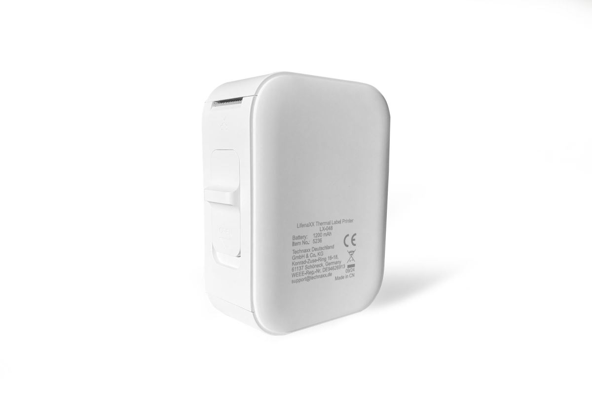 Vytvářejte štítky snadno a ekologicky s přenosnou termální tiskárnou etiket Technaxx Lifenaxx LX-048.