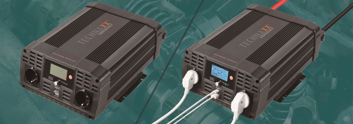 Technaxx Výkonový měnič 3000 W Sine (TE23) - Převádí 12V stejnosměrné napájení z baterie na standardní 230V střídavé napětí.
