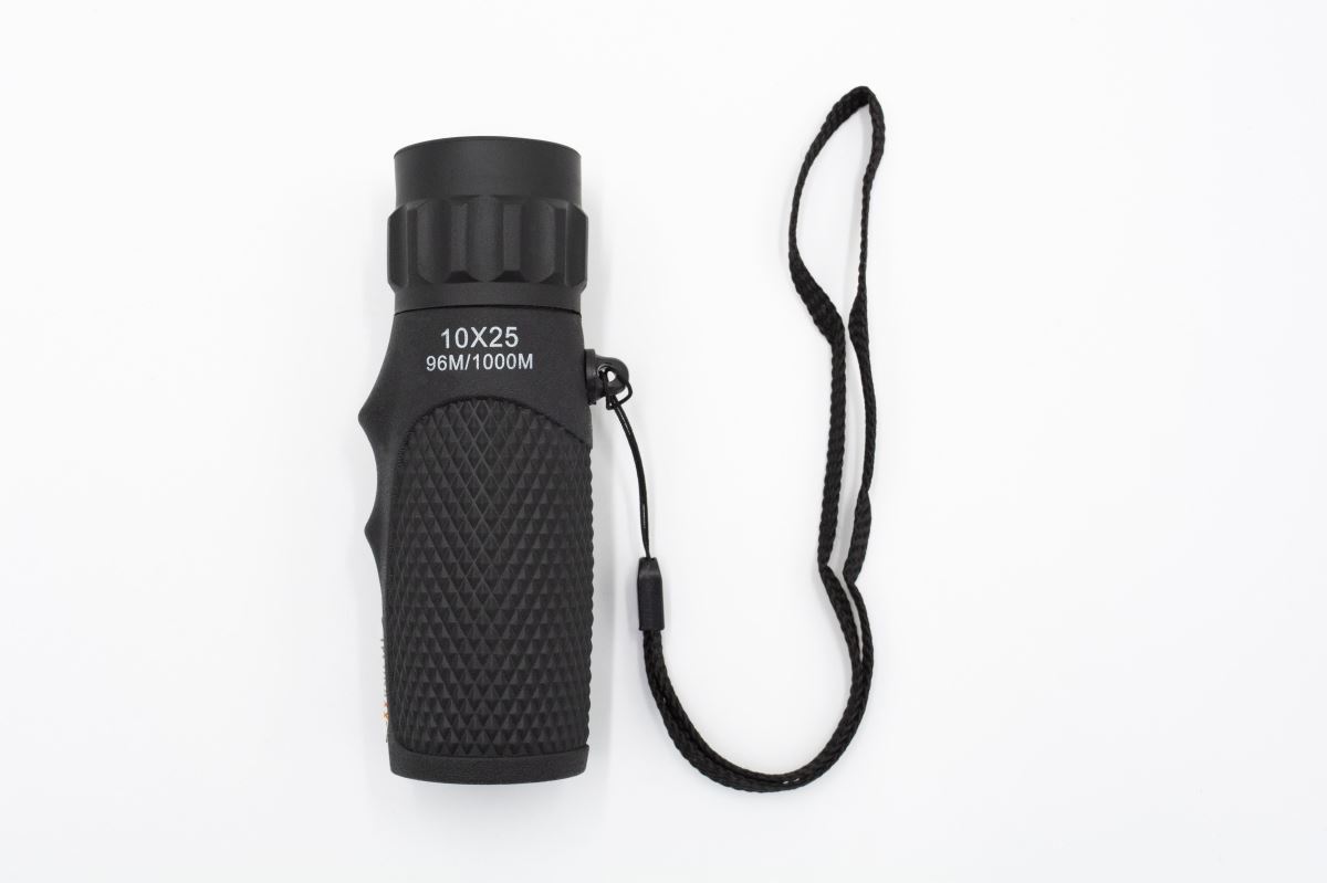 Universální monokulární dalekohled 10x25 v jednobarevném, černém provedení a praktickým pouzdrem