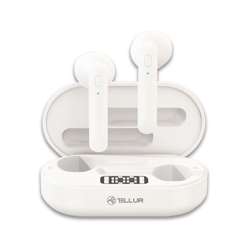 Tellur Flip True bezdrátová stereo sluchátka, Bluetooth 5.0, dotykové ovládání pro hudbu a hovory, zobrazení stavu baterie, lehká, pro pohodlné nošení