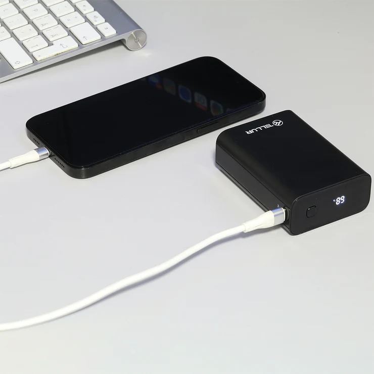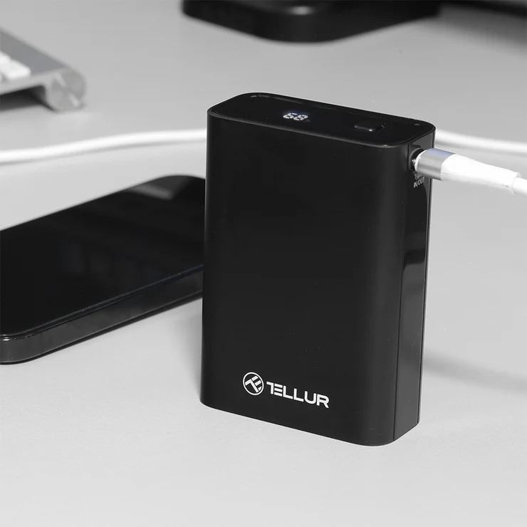 Tellur PD702 Compact Pro 20000mAh PowerBanka QC3.0 22.5W + PD20W, LCD display, černáNejpřenosnější baterie na trhu, kterou si můžete vzít s sebou, ať jdete kamkoli, díky její malé velikosti se vejde i na to nejmenší místo do zavazadla nebo do batohu. Externí baterie PD702 s ultrakompaktním designem a vysokou kapacitou úložiště (20 000 mAh) dokáže rychle nabít váš kompatibilní iPhone z 0 % na 50 % za 30 minut (při použití s kabelem MFi Type-C to Lightning – není součástí dodávky) , i když má poloviční velikost než iPhone 13 Pro Max. Dokáže dodat masivních 22,5W energie a lze jej použít k nabíjení dvou zařízení současně díky portu USB QC 3.0 a funkci Power Delivery (PD 3.0 20W). Díky funkci rychlého dobíjení trvá plné nabití až 6–8 hodin přes port Type-C PD (při použití s nástěnnou nabíječkou PD a kabelem USB-C na Type-C). Ochranné funkce chrání vaše zařízení před zkratem, přebitím, nadměrným vybitím, nadproudem.