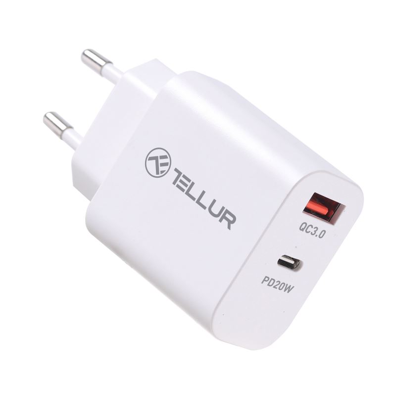 Tellur PDHC101 síťová dvouportová nabíječka, PD 20W + QC3.0 18W - tato nabíječka je až 4krát rychlejší než standardní nabíječky, takže už nikdy nebudete muset čekat, až se vaše zařízení znovu nabije.