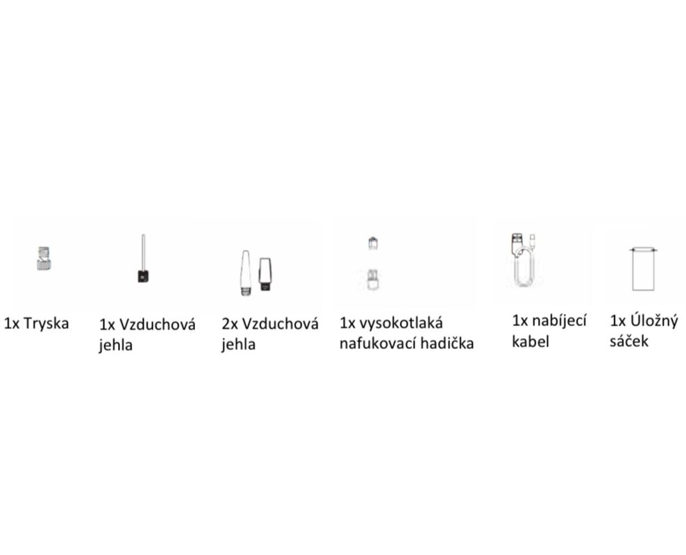 Součástí je také praktické úložné pouzdro a sada adaptérů pro různé typy ventilů.