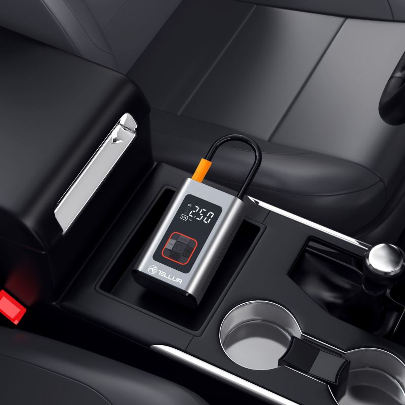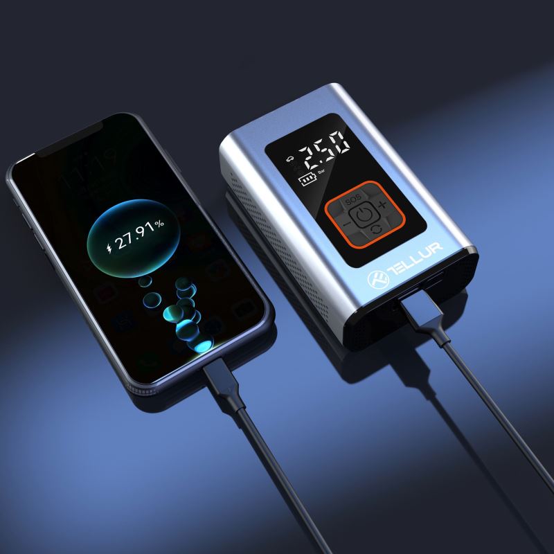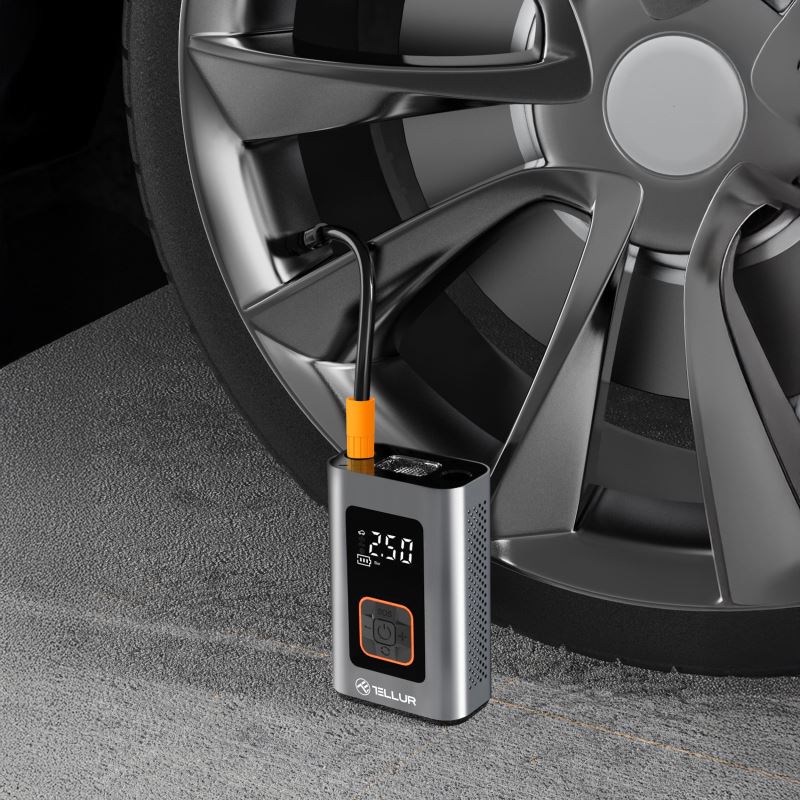 Tellur přenosný elektrický vzduchový kompresor, 150 PSI, 16 L/min, 4000 mAh, USB-C, aluminium – Spolehlivý pomocník v nesnázích na cestách.Kompaktní síla pro každý den