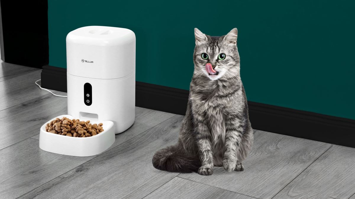 Ať už cestujete, jste na dovolené nebo pracujete pozdě, můžete svého mazlíčka nakrmit kdykoli a odkudkoli díky 4litrovému podavači suchého krmiva Tellur Smart App, který lze ovládat.