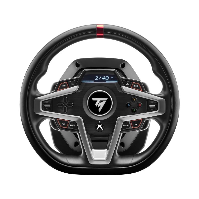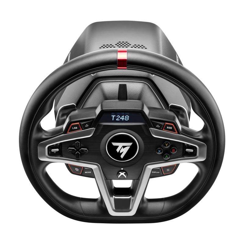 T248 přináší o 70% větší výkon (ve srovnání s předchozími hybridními závodními volanty řady Thrustmaster TMX) a přidává špičkové nové funkce včetně předvoleb Force Feedback, které lze ve hrách měnit za běhu, magnetické řadicí páky, interaktivní obrazovku s více než 20 různými zobrazeními a sadu magnetických pedálů se 4 režimy tlaku na brzdovém pedálu.