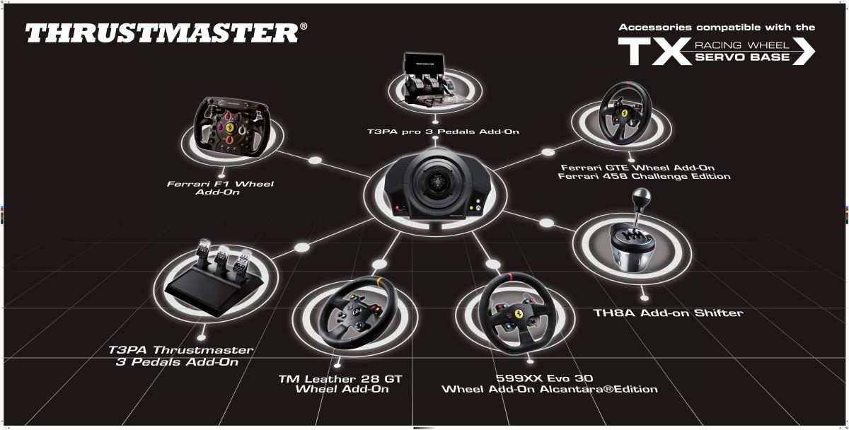 Thrustmaster provází „virtuální závodníky“ prostřednictvím špičkových herních produktů. Všechny své zkušenosti přenesl do nové sady TX Leather Edition, jedinečné limitované edice neuvěřitelně přesných závodních ovladačů, které si závodníci oblíbili pro jejich schopnost poskytovat bezkonkurenční ponoření do světa závodních simulací na PC a Xbox One®, One X, One S, Xbox Series X . Tato limitovaná edice nabízí kombinaci oslavující nejnovějšího člena Forza franšízy - "Forza Motorsport 6" k dispozici exkluzivně pro Xbox One, One X, One S, Xbox Series X .