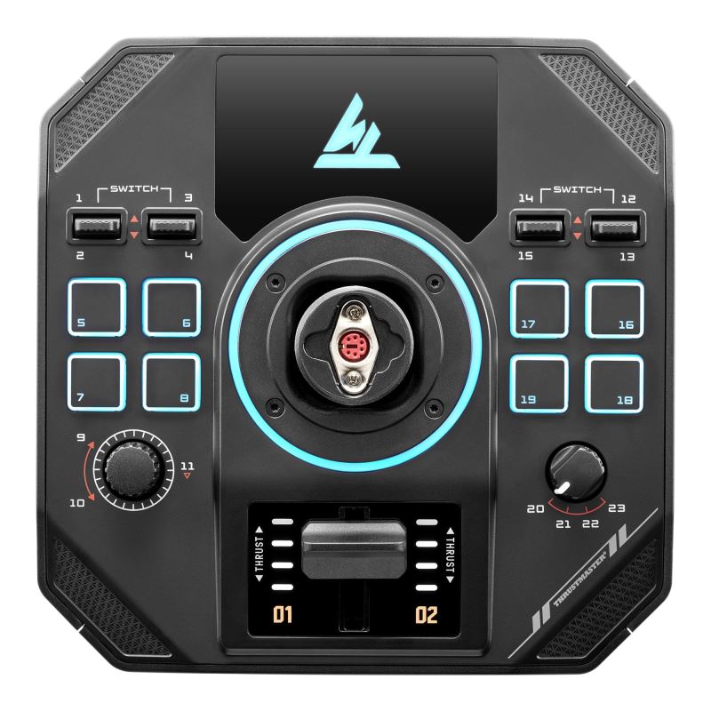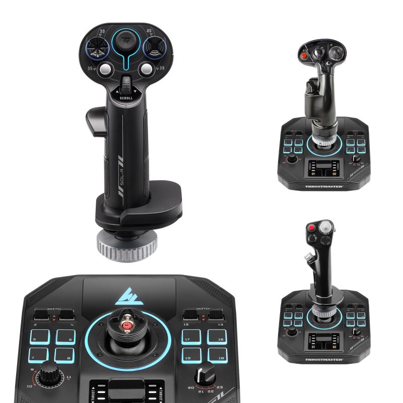 Rozšiřte svůj arzenál – Thrustmaster SOL-R 5 BASE nabízí 23 tlačítek, 4 osy, RGB podsvícení a technologii H.E.A.R.T. pro dokonalou přesnost řízení.