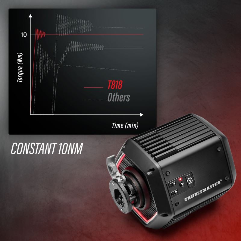 Thrustmaster T818 Black Edition je Direct Drive základna pro PC, která poskytuje nezkreslený Force Feedback a konstantní točivý moment až 10 N·m.