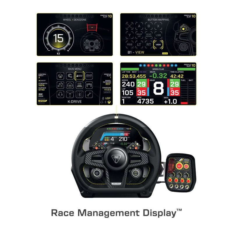 Navíc design s přímým pohonem vám poskytuje nízkou odezvu na latenci pro přesný pocit ze situace na trati a udržuje vás naladěné na výkon vašeho vozu.