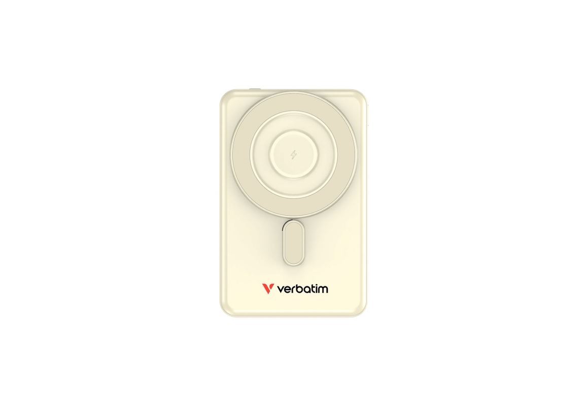 Verbatim magnetická bezdrátová powerbanka se stojánkem Charge 'n' Go poskytuje možnost dobíjet až čtyři zařízení současně prostřednictvím kabelových i bezdrátových výstupů.