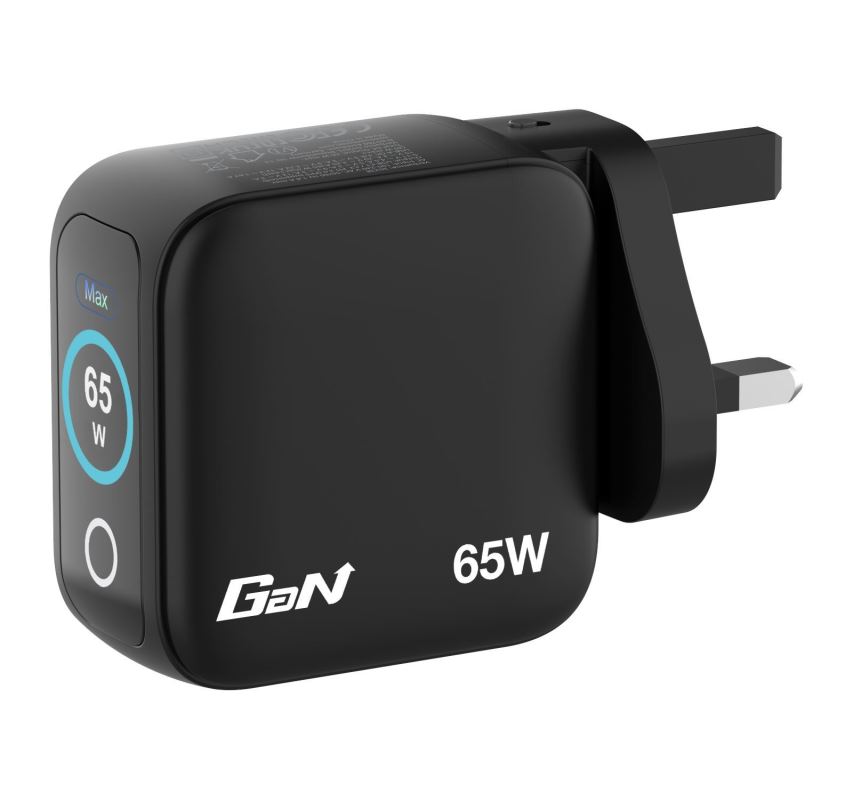 - Verbatim Mini GaN nabíječka s displejem, 2× USB-C PD 65 W, 1× USB-A QC 3.0, černá
