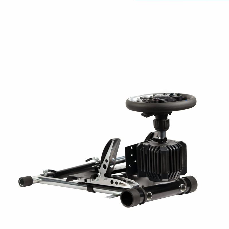 Wheel Stand Pro Deluxe V2 je stojan určený pro upevnění různých herních periferií, jako jsou volanty s pedály, jako například CSL/GT DD PRO + GTS CSL.