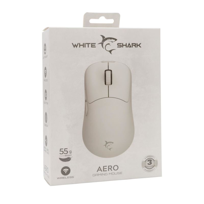 White Shark herní bezdrátová myš AERO, 6D, 5000 dpi, bílá