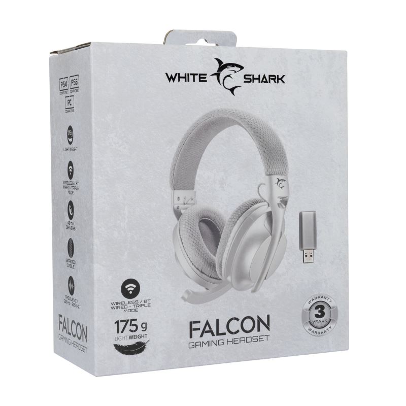 White Shark herní bezdrátový headset FALCON, pro PC, PS4/ PS5, MAC, bílá