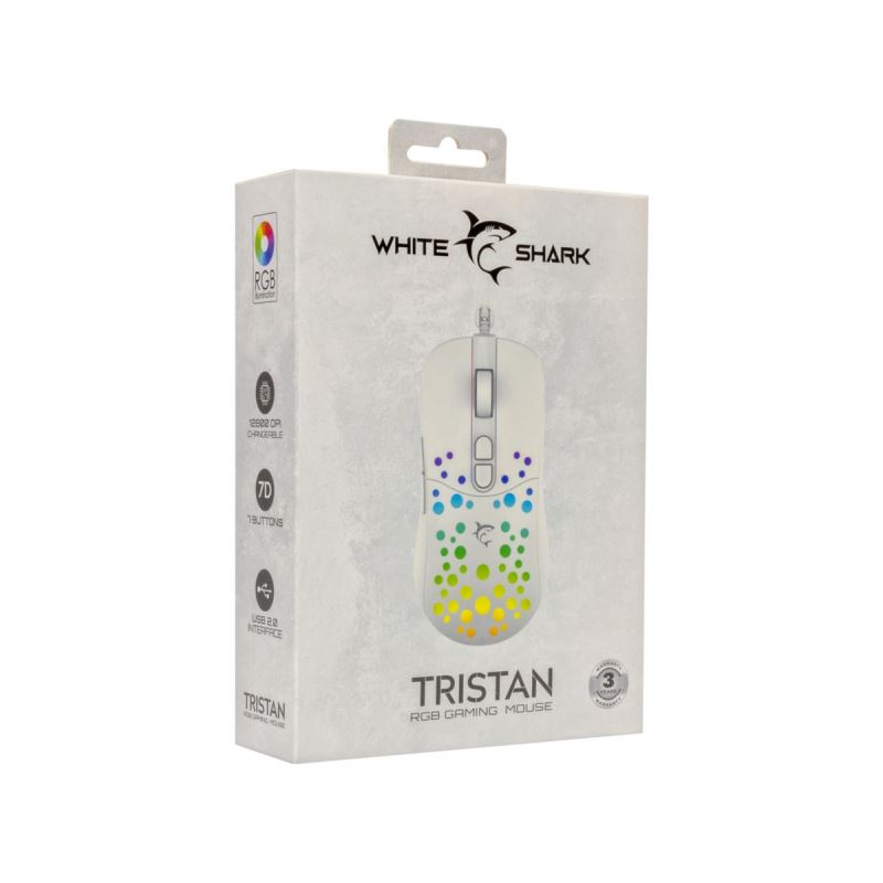 White Shark herní myš TRISTAN-2 RGB, 12.800 dpi, bílá