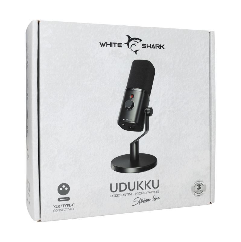 White Shark podcastový mikrofon UDUKKU, dynamický, USB-C/XLR, se stojánkem, černá (DSM-04)