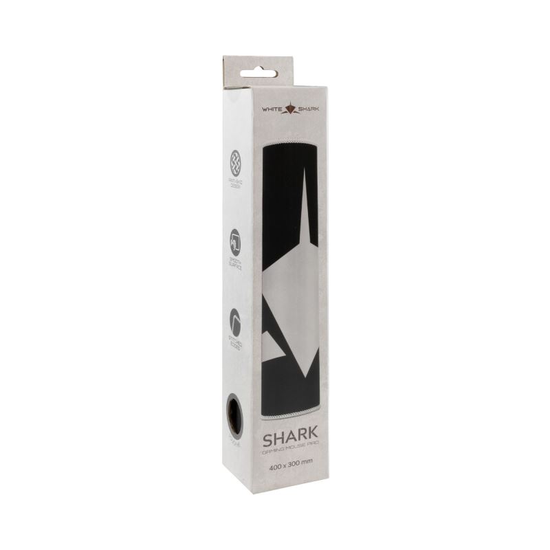 White Shark MP-1966 - SHARK L, podložka pod myš 400 x 300mm, hladce šité okraje proti třepení, měkký látkový povrch a strukturovaná gumová spodní strana