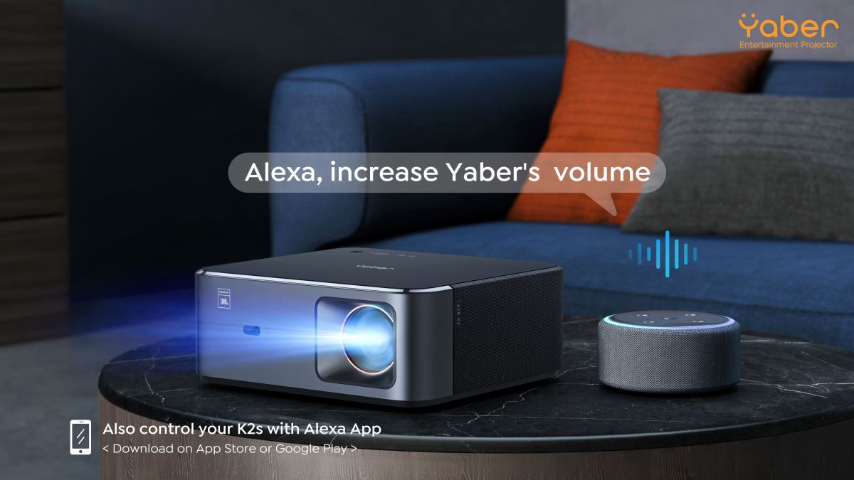 Projektor Yaber K2s umožňuje ovládání hlasem, stačí zadávat příkazy Amazon Alexa a projektor bude odpovídajícím způsobem reagovat, což představuje snadný a pohodlný způsob ovládání projektoru.