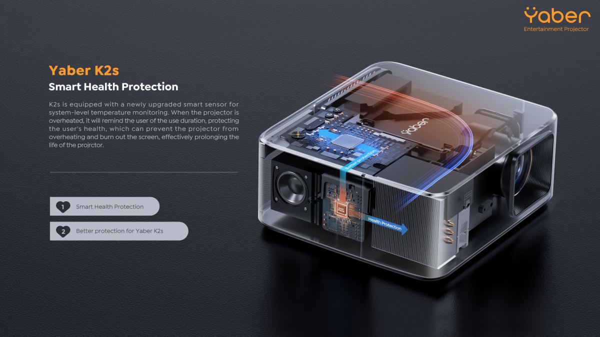 Yaber K2s je chytrý zábavní projektor, který se používá pro domácí zábavu, zaměřuje se na komplexní modernizaci audiovizuálních funkcí a také používá funkce smart a conviences, aby vyhověl pohlcujícímu audiovizuálnímu zážitku spotřebitelů a jejich potřebám více scénářů, jako je párty, domácí filmový večer atd.