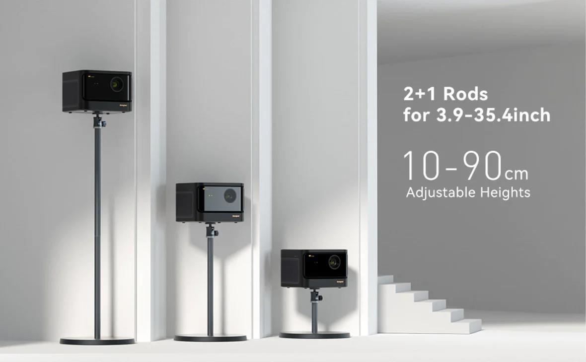 With 2+1 support rods, the stand can be adjusted in the range of 3.9-35.4 inches (10-90cm), ideally adaptable for different projection requirements