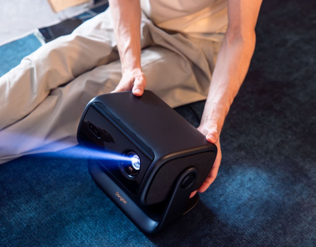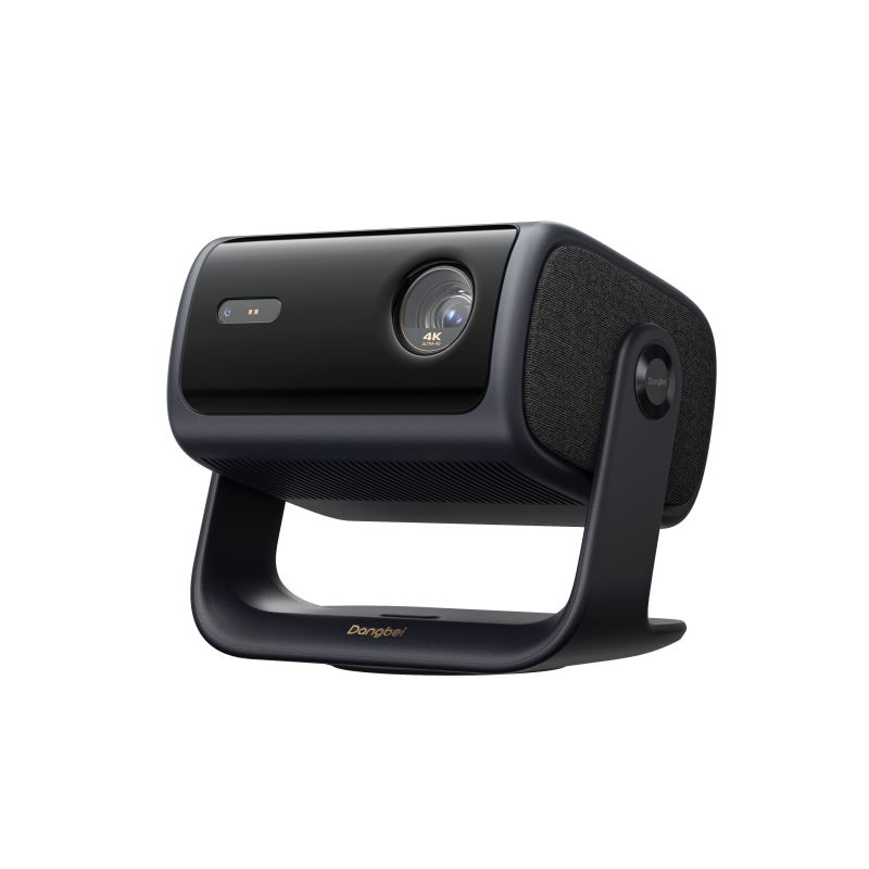 The Dangbei MP1 Max incorporates a built-in stand with 360° horizontal rotation and 135° vertical tilt, offering flexible positioning on tables, shelves, or mounted setups.