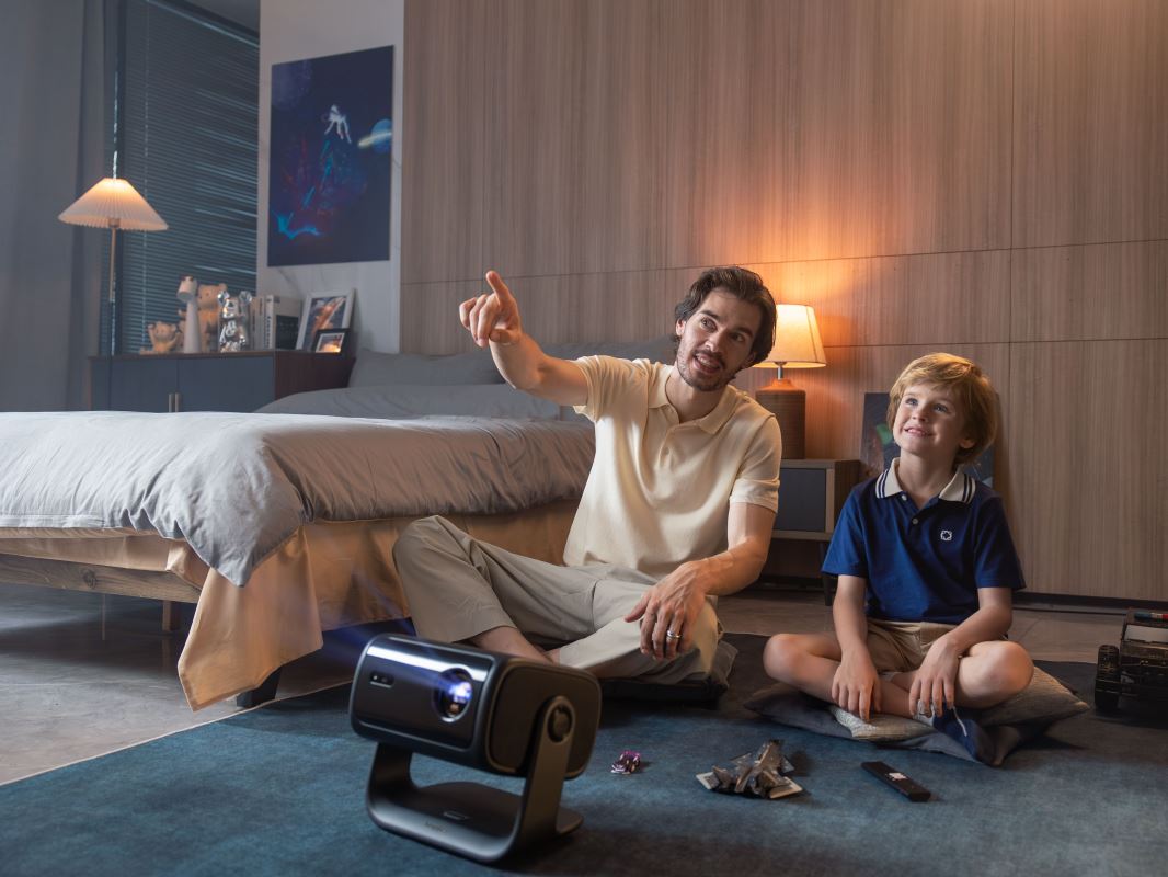 - Built-in Stand x InstanPro AI Image Setup: Its 135° vertical tilt & 360° horizontal rotation stand, combined with InstanPro AI Image Setup. Features like Auto Focus, Auto Keystone Correction, Screen Fit, Obstacle Avoidance, Real-Time Keystone Correction, Eye Protection, and AI Brightness Adjustment, making every viewing position perfect for the show.