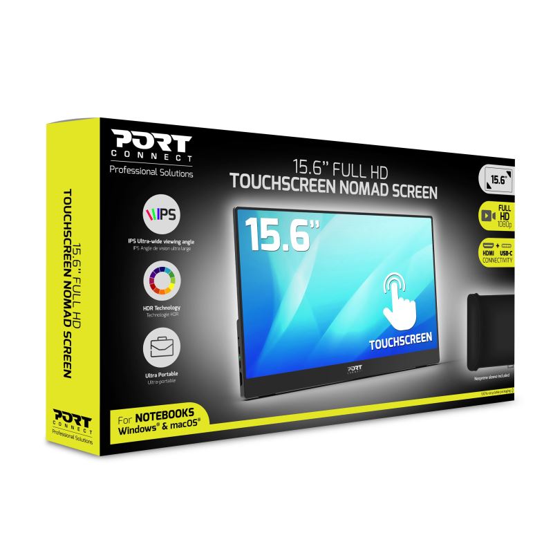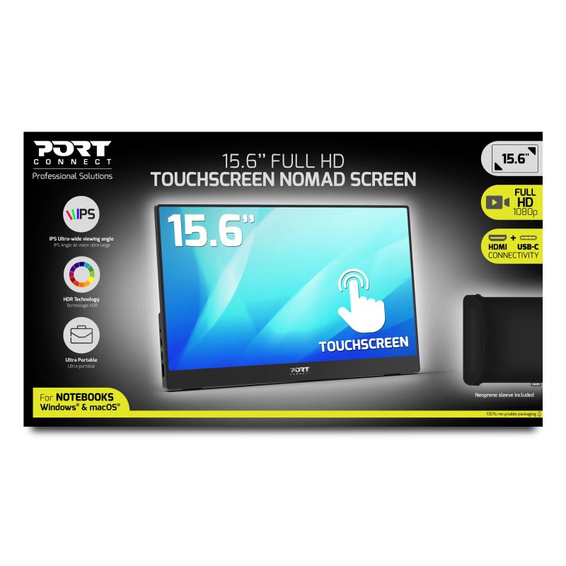PORT CONNECT Nomad Monitor, Full HD LCD, 15.6", Touchscreen, IPS Panel