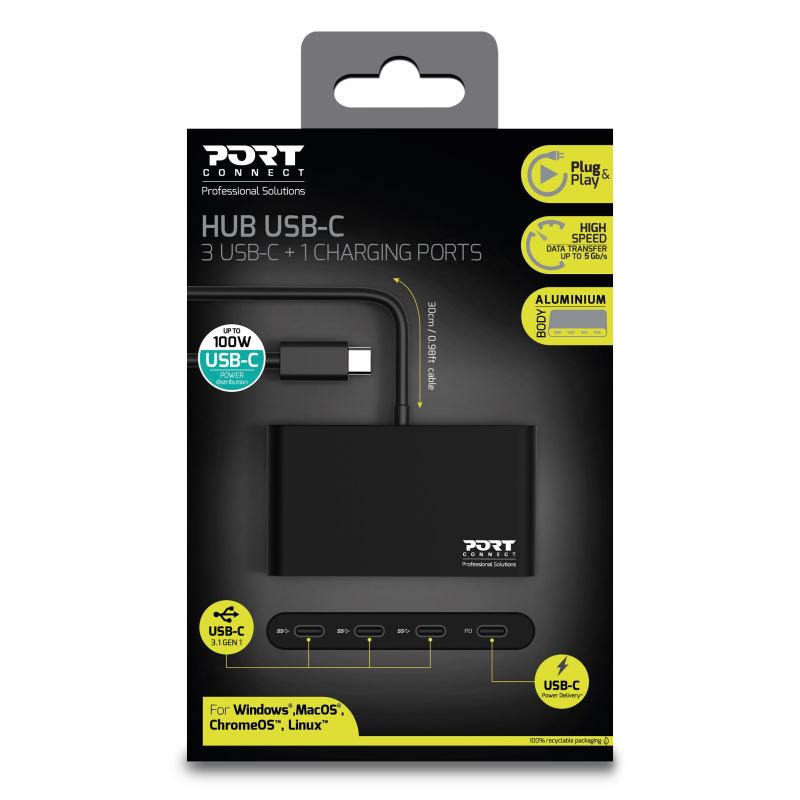 PORT CONNECT USB-C HUB, 3x USB-C 3.1 + 1x USB-C 100W PD