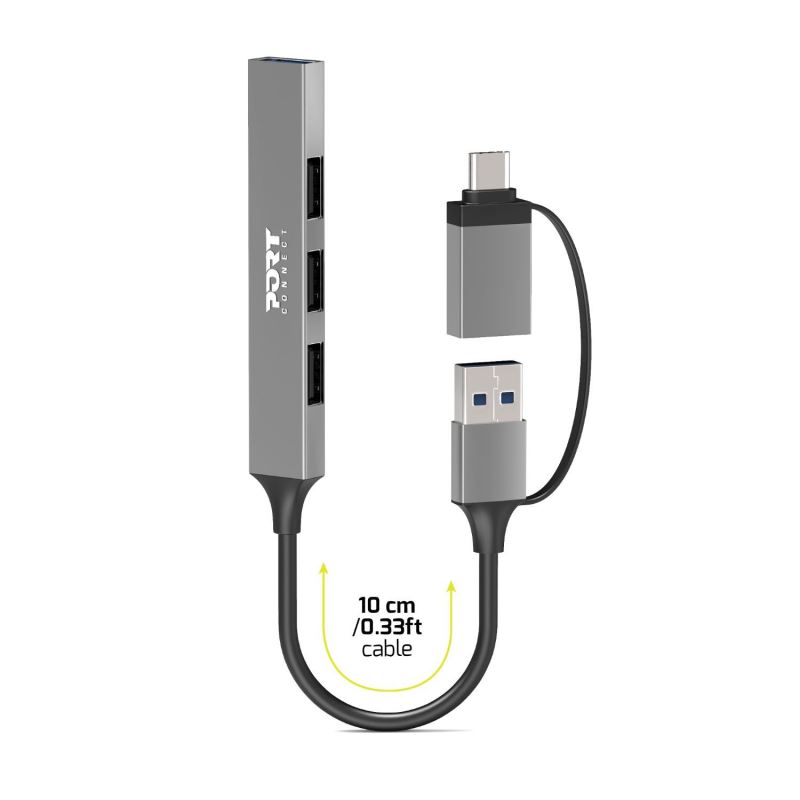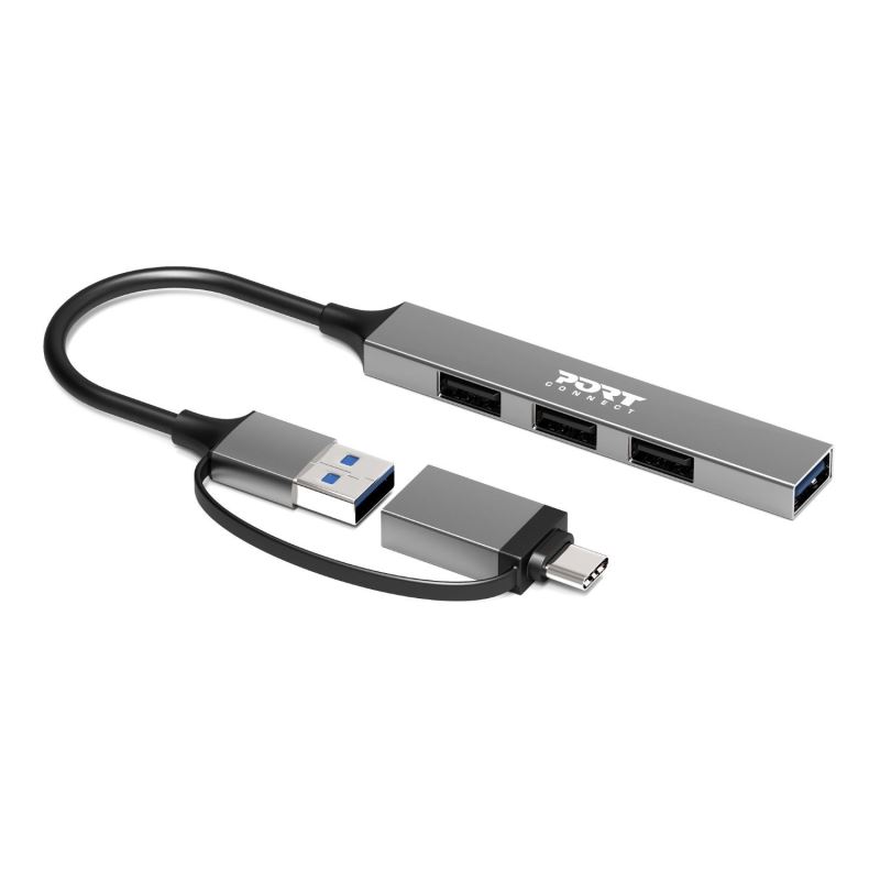 PORT CONNECT USB HUB, 1x USB 3.0 + 3x USB 2.0, USB-A/USB-C input, Silver