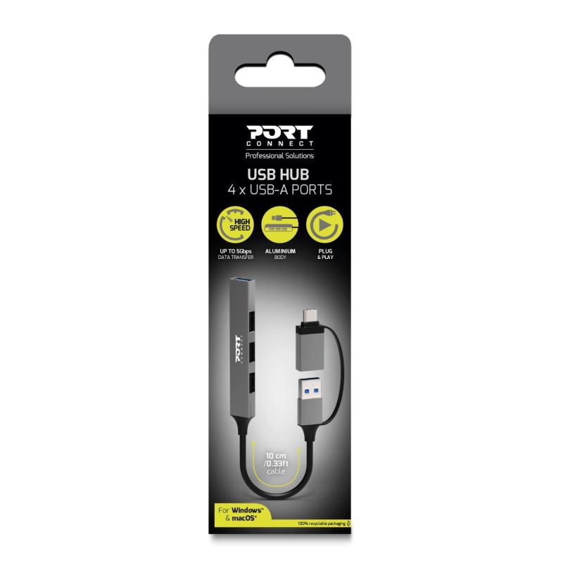 The PORT CONNECT USB hub with 4 USB-A ports is the ideal solution for users who need to connect multiple devices via a single port.
