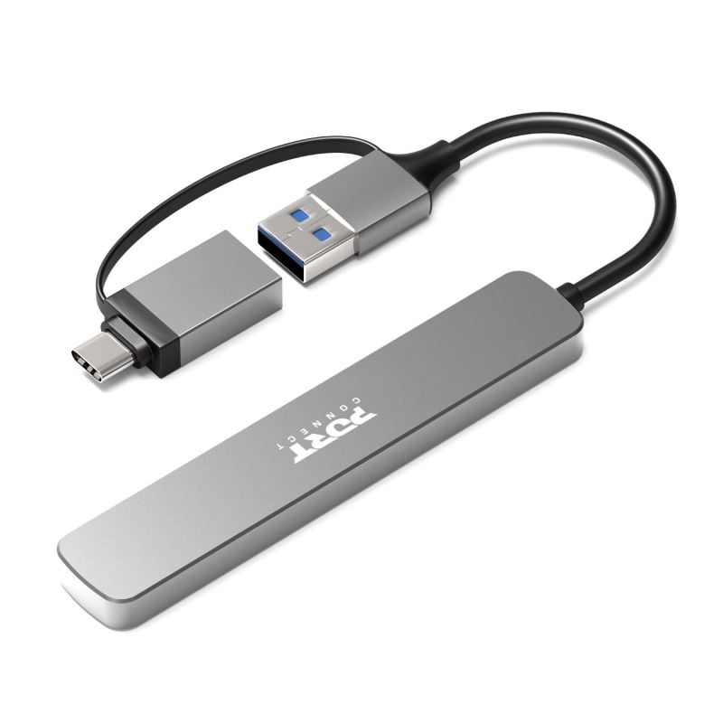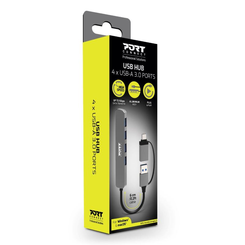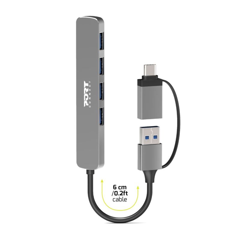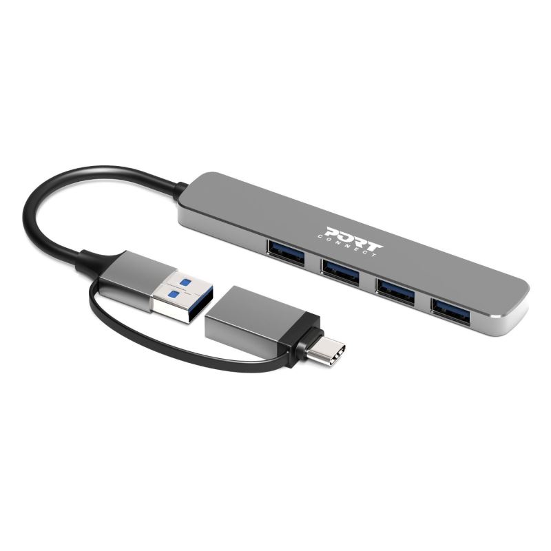 PORT CONNECT USB HUB, 4× USB 3.0, USB-A/USB-C input, Silver
