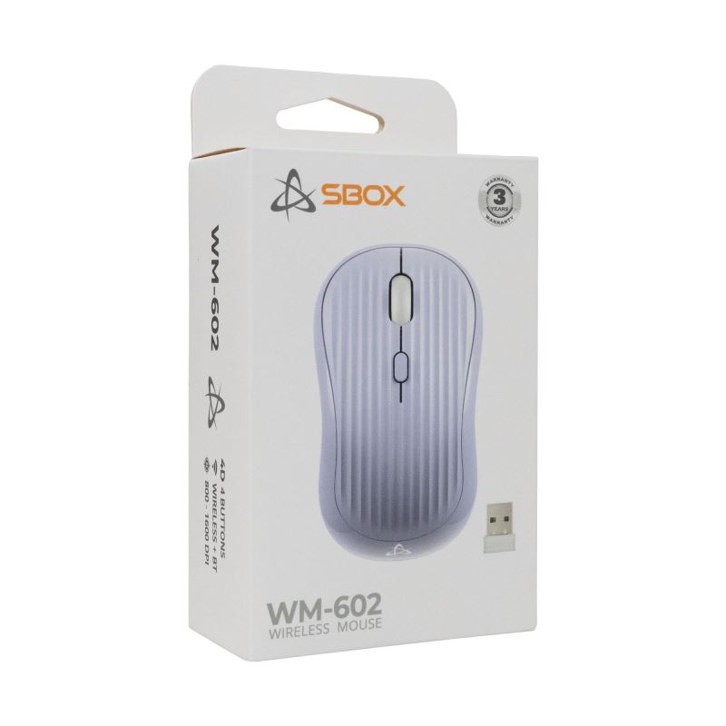 SBOX WM-602 is a compact wireless mouse with dual connectivity that ensures smooth work and reliable performance in the office and on the go.