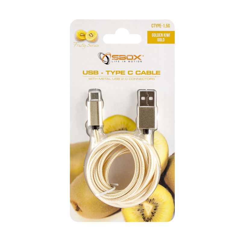SBOX kabel USB- USB-TYPE C M/M, 1,5m, Blister, Gold