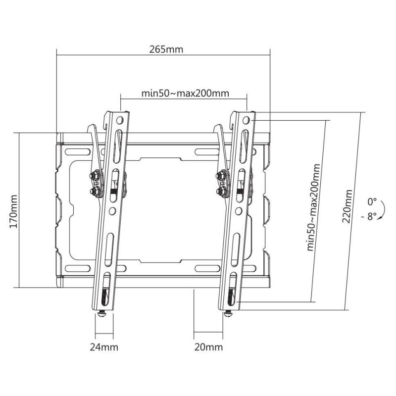 Vertical tilt: 0 - 8°