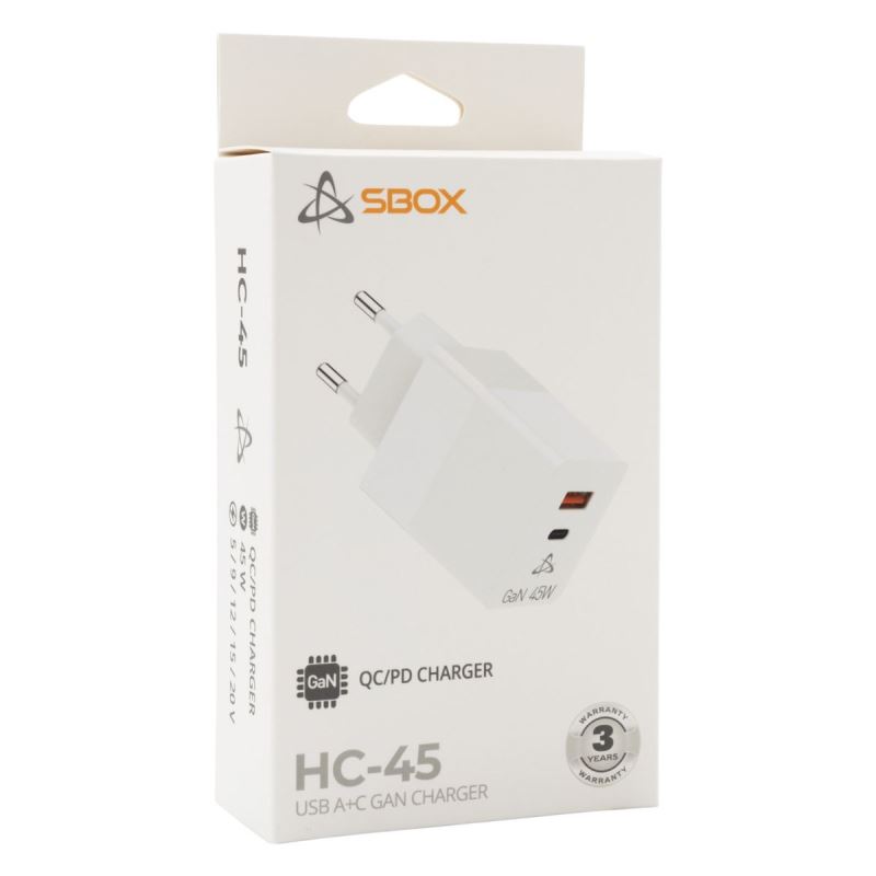 The SBOX HC-45 charger is an ideal solution for users looking for a compact and reliable adapter with high performance and modern technology.